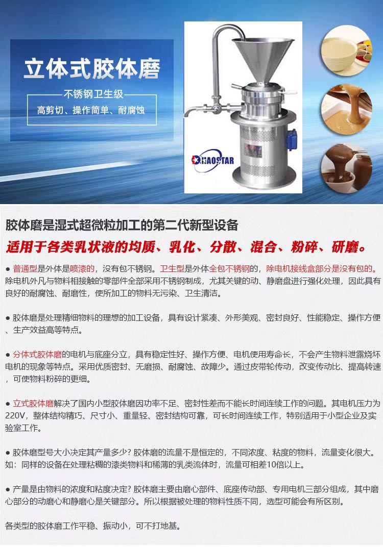 1.立式膠體磨LB系列-精品單冷卻型HAOSTARS COLLOIDS MILL性能表 a
